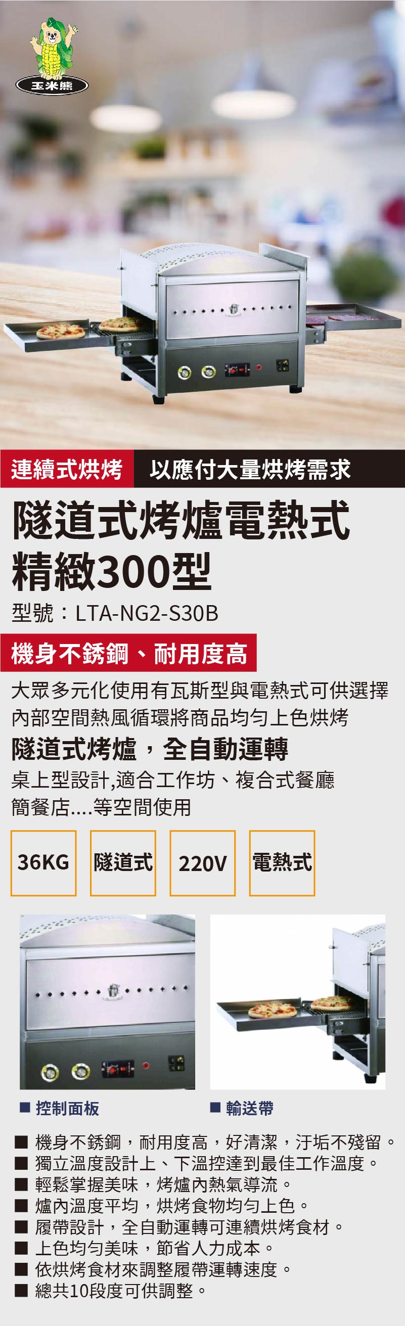 隧道式烤爐瓦斯型 精緻300型