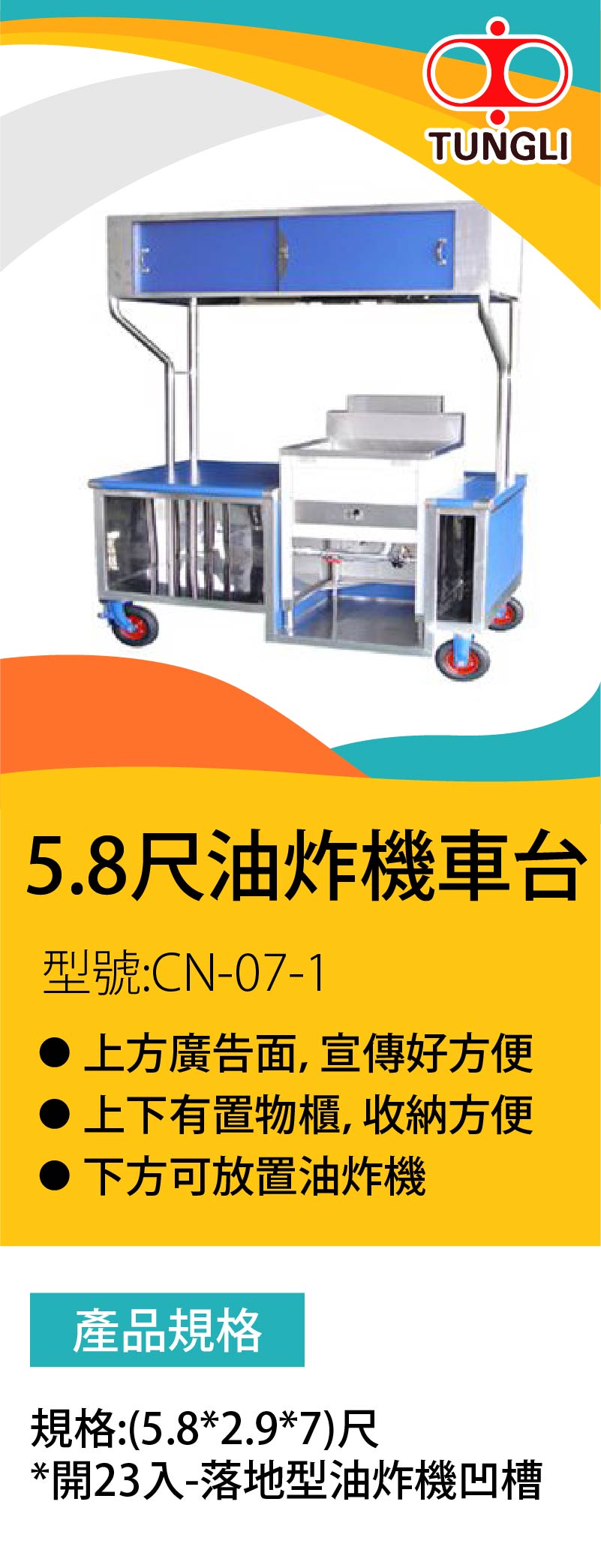 規格:(5.8*2.9*7)尺 (開23入-落地型油炸機凹槽)
