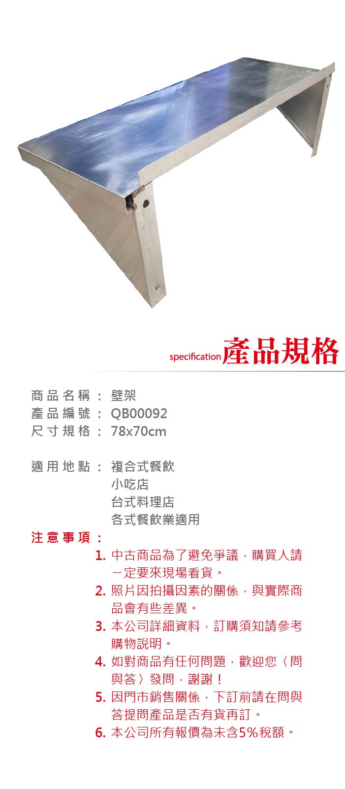 二手/中古 5尺壁架