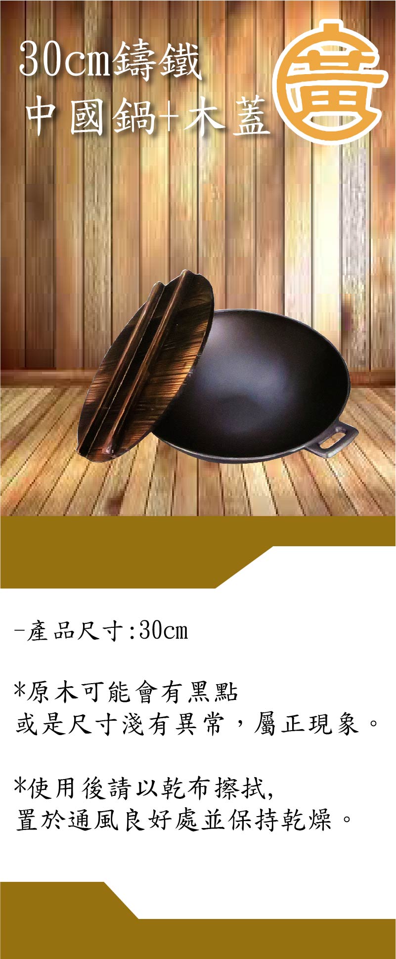 24cm鑄鐵中國鍋+木蓋