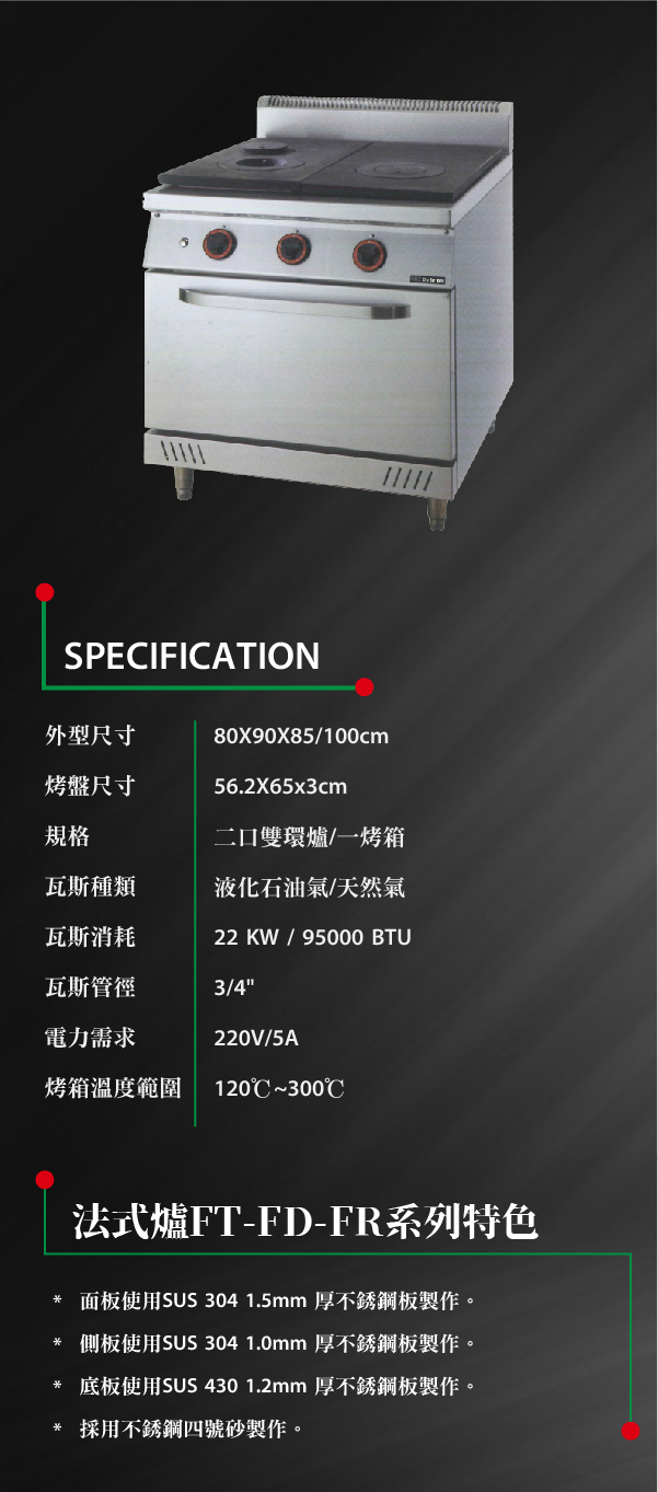 瓦斯管徑:3/4",烤箱溫度為:100~300度。