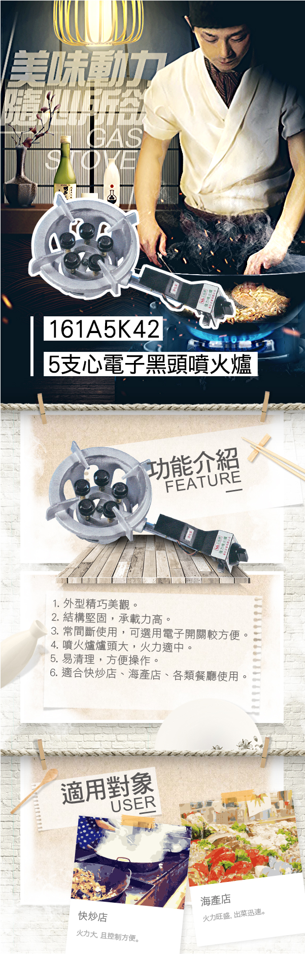 適合快炒店、海產店、各類餐廳使用。