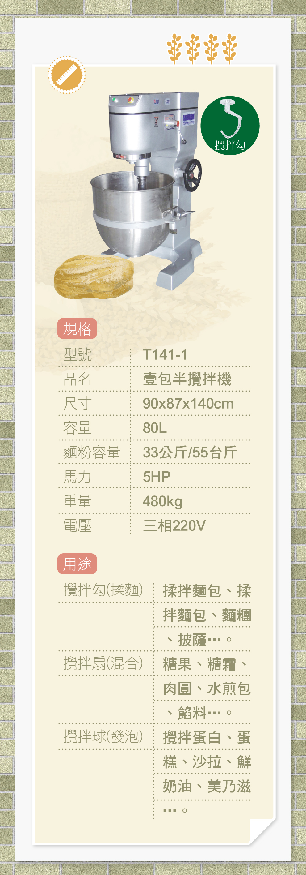 T141-1 80L壹包半攪拌機(一桶一勾)